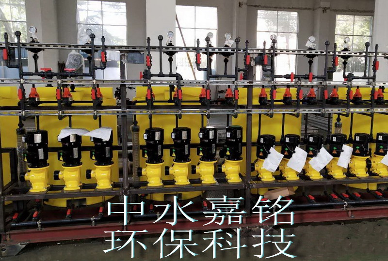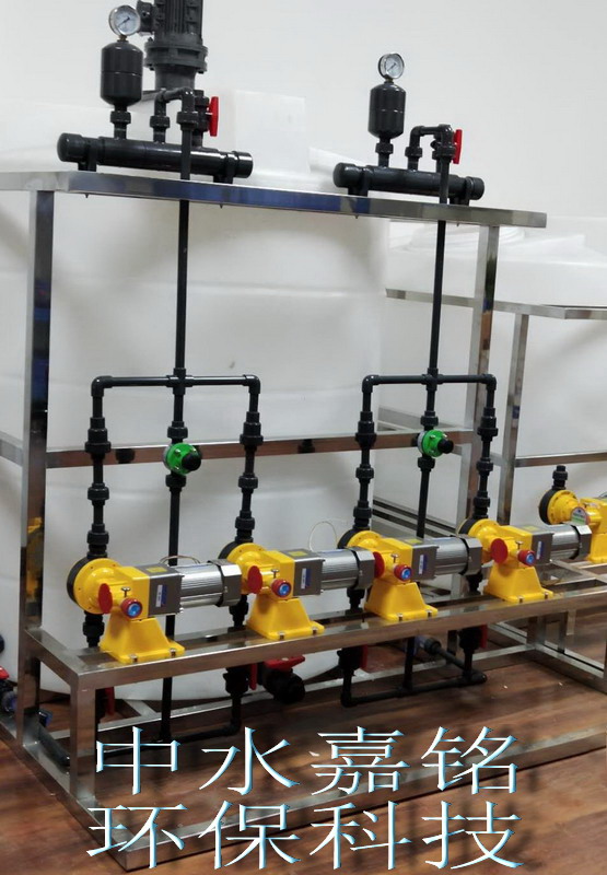 简易加药装置由搅拌机、搅拌箱、计量泵、就地控制柜及支架附件组成。用于水处理工程中投加混凝剂、助凝剂、消毒液、冷却水投加助垢剂,化工、印染定时、定量投加化学药剂、酸、碱溶液等。该设备结构紧凑、操作方便、不需固定基础。